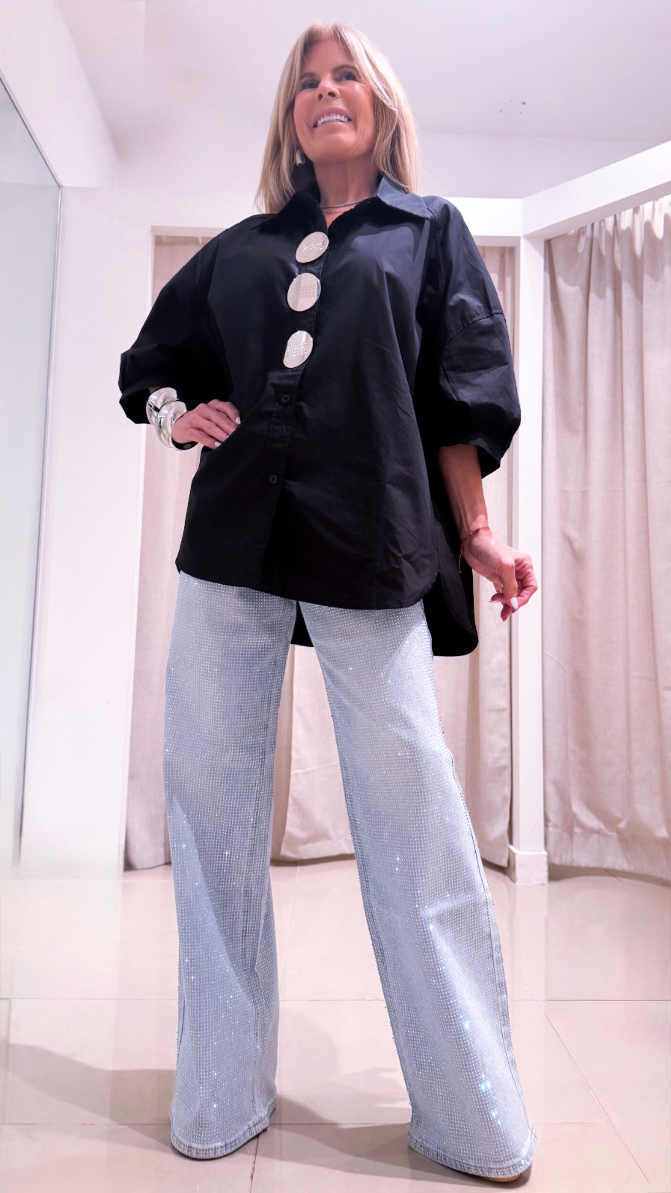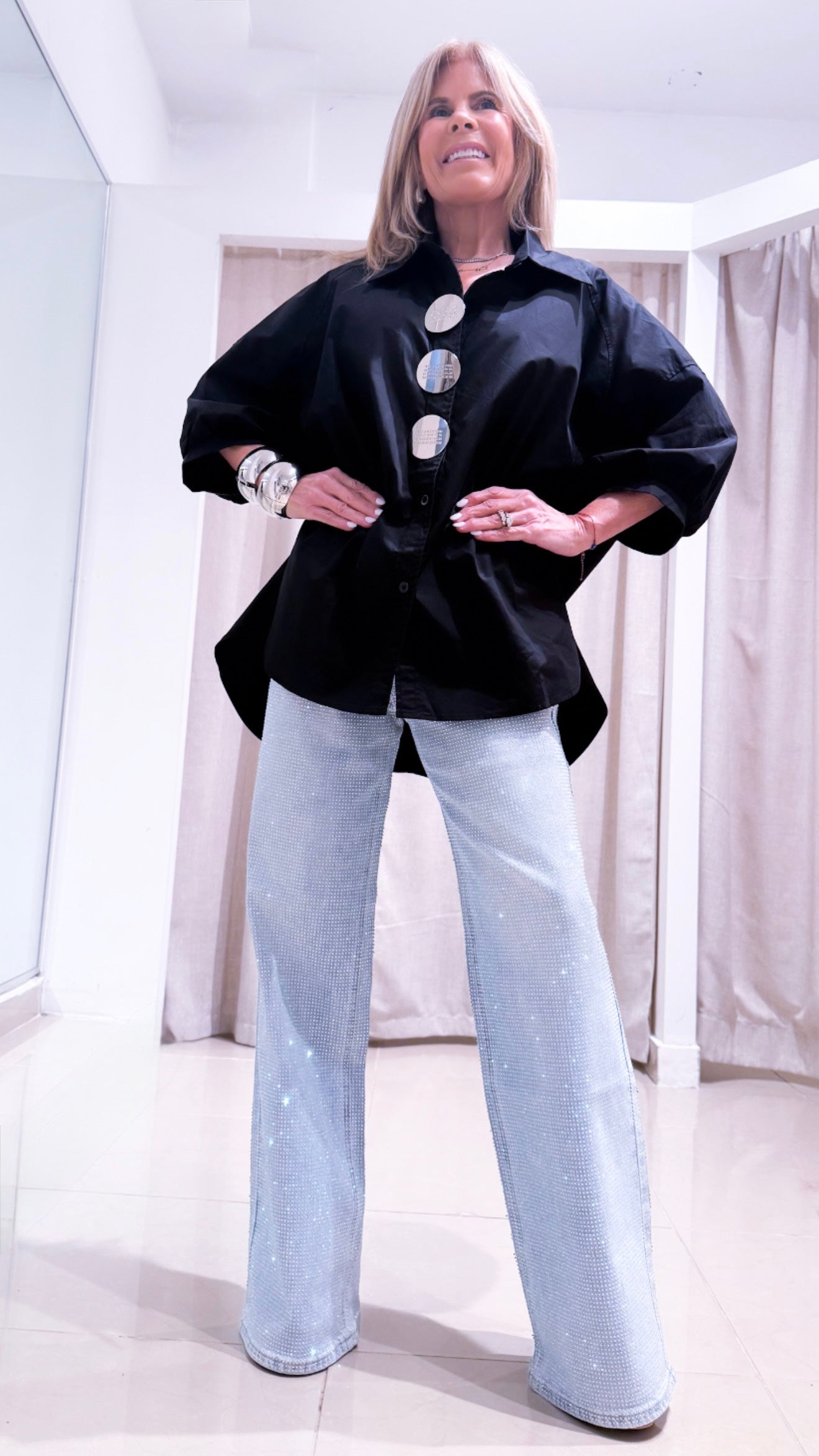 The Adora top is a sophisticated addition to your wardrobe. Made from 100% cotton, this top features 3 sleek silver buttons for added style. Elevate any outfit with this solid-colored, high-quality piece.
