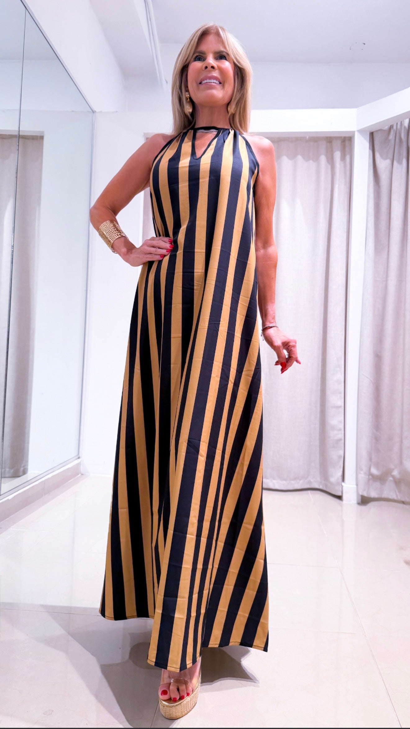 Gorgeous striped sleeveless strap maxi dress beautiful casual v neck long dress