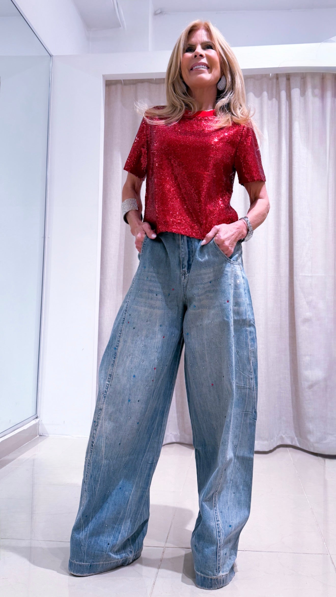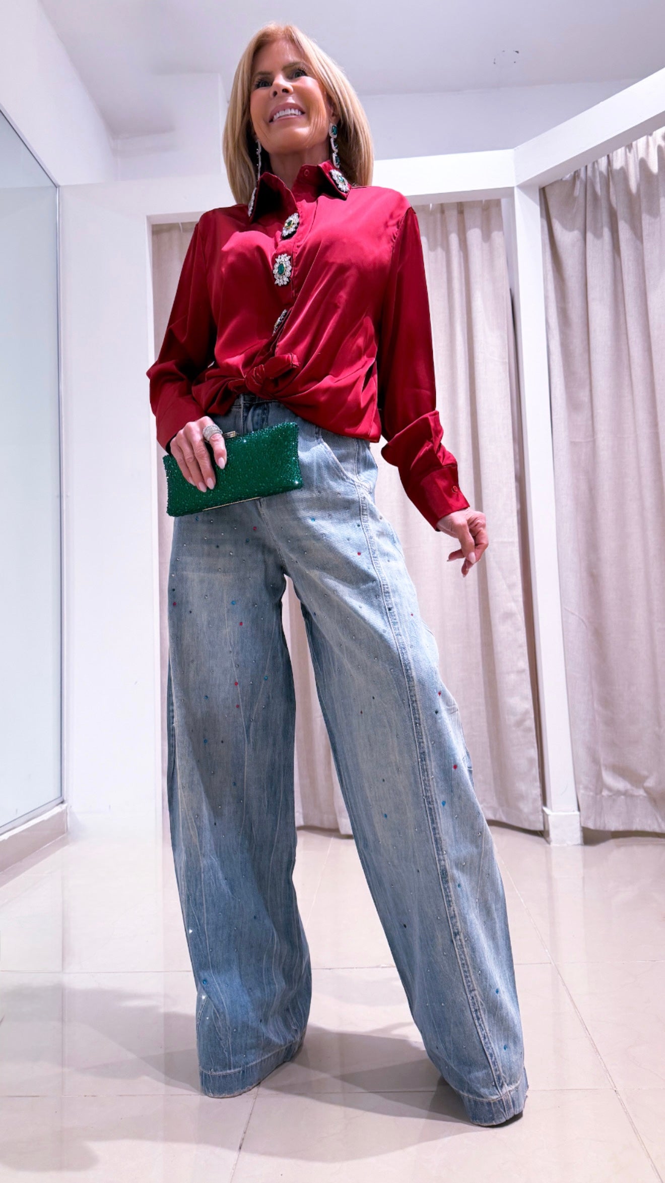 The Alicia pant is expertly crafted from soft dectela fabric, offering a comfortable and durable fit. With colorful rhinestone accents, these jeans add a touch of sparkle to any outfit. Experience a stylish and versatile addition to your wardrobe with the Alicia pant.