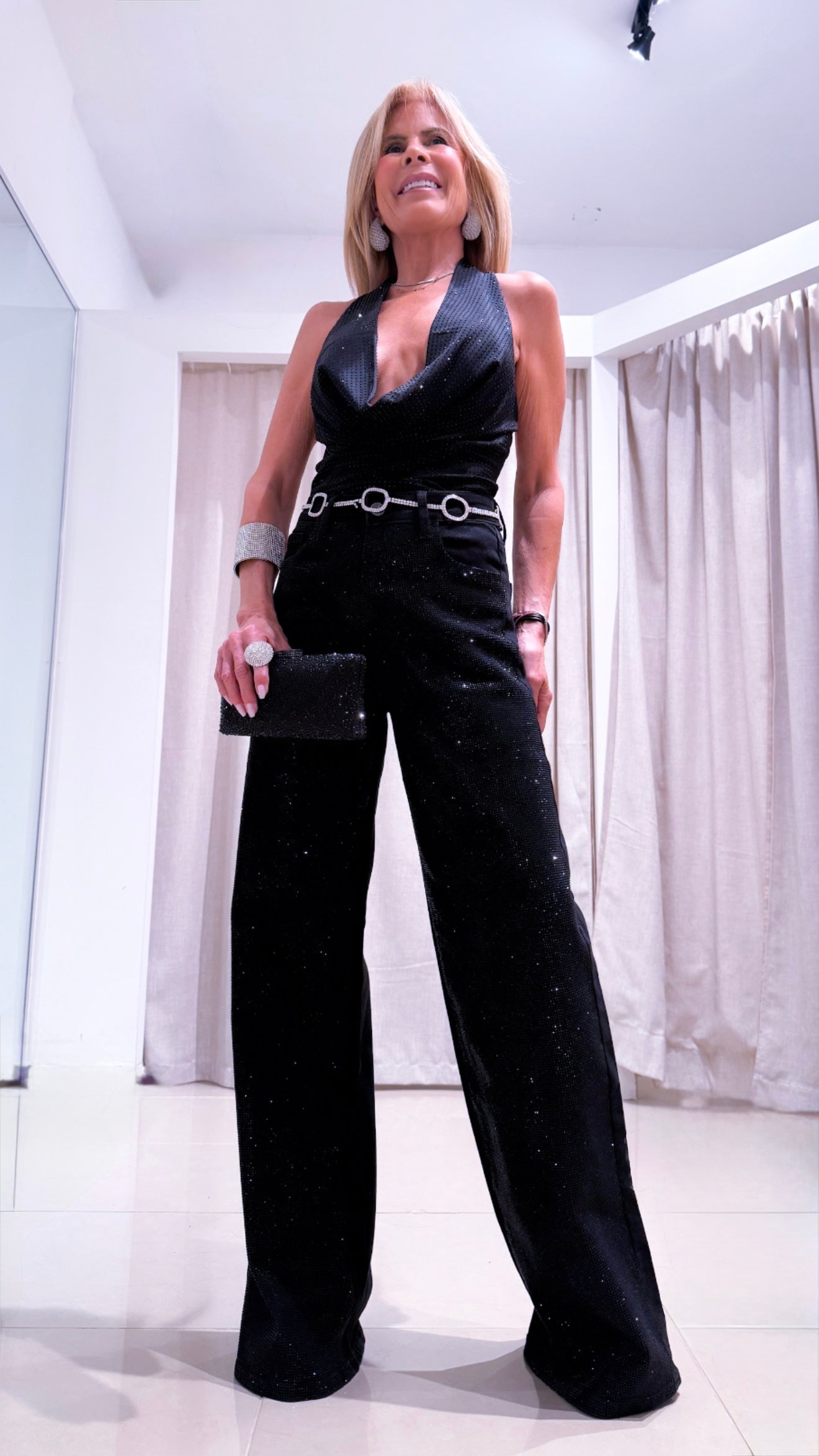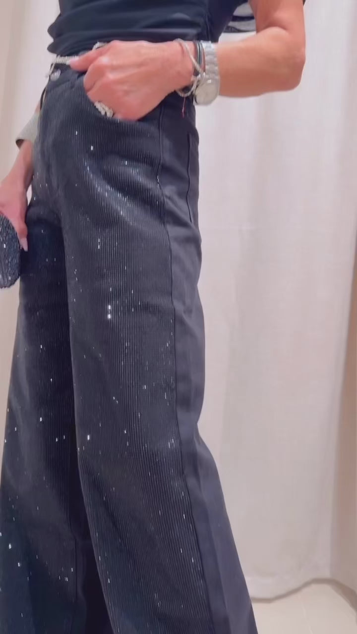 Upgrade your wardrobe with our Rochelle Pant! These elegant black pants feature stunning stone embellishments on the front, adding a touch of glamour to any outfit. Made with high-quality fabric, these pants are both stylish and comfortable. Elevate your look with Rochelle Pant.