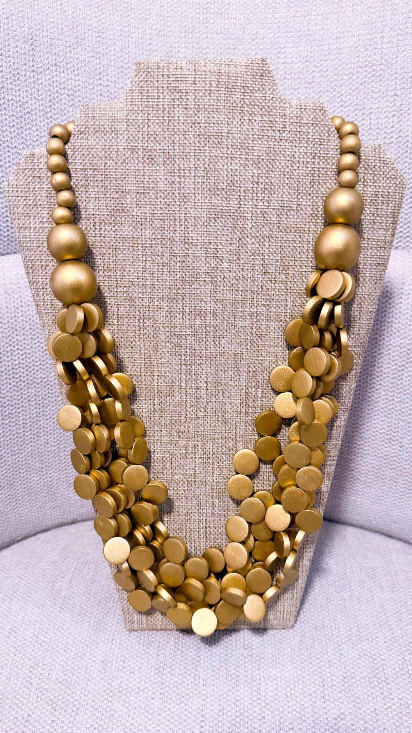 The Angelique necklace features a matte wooden collar with elegantly cascading and spherical beading. Handcrafted with precision and exceptional attention to detail, this necklace is the perfect accessory to elevate any outfit. Embrace the natural beauty of wood with this stunning piece.