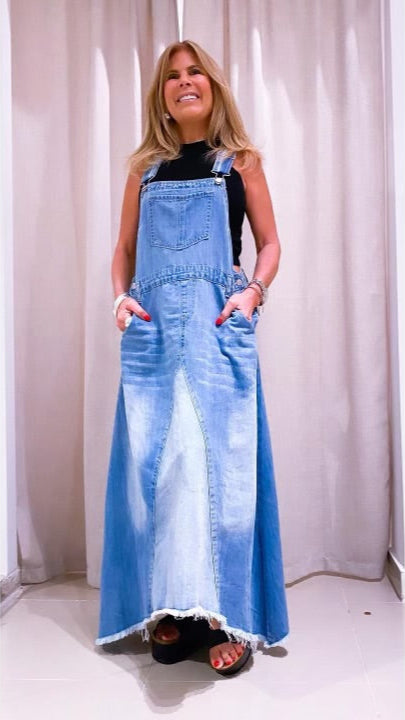 "The Carpinter dress is a modern take on a traditional jumper, with its denim material and trendy design. Perfect for any occasion, this dress is both stylish and comfortable."