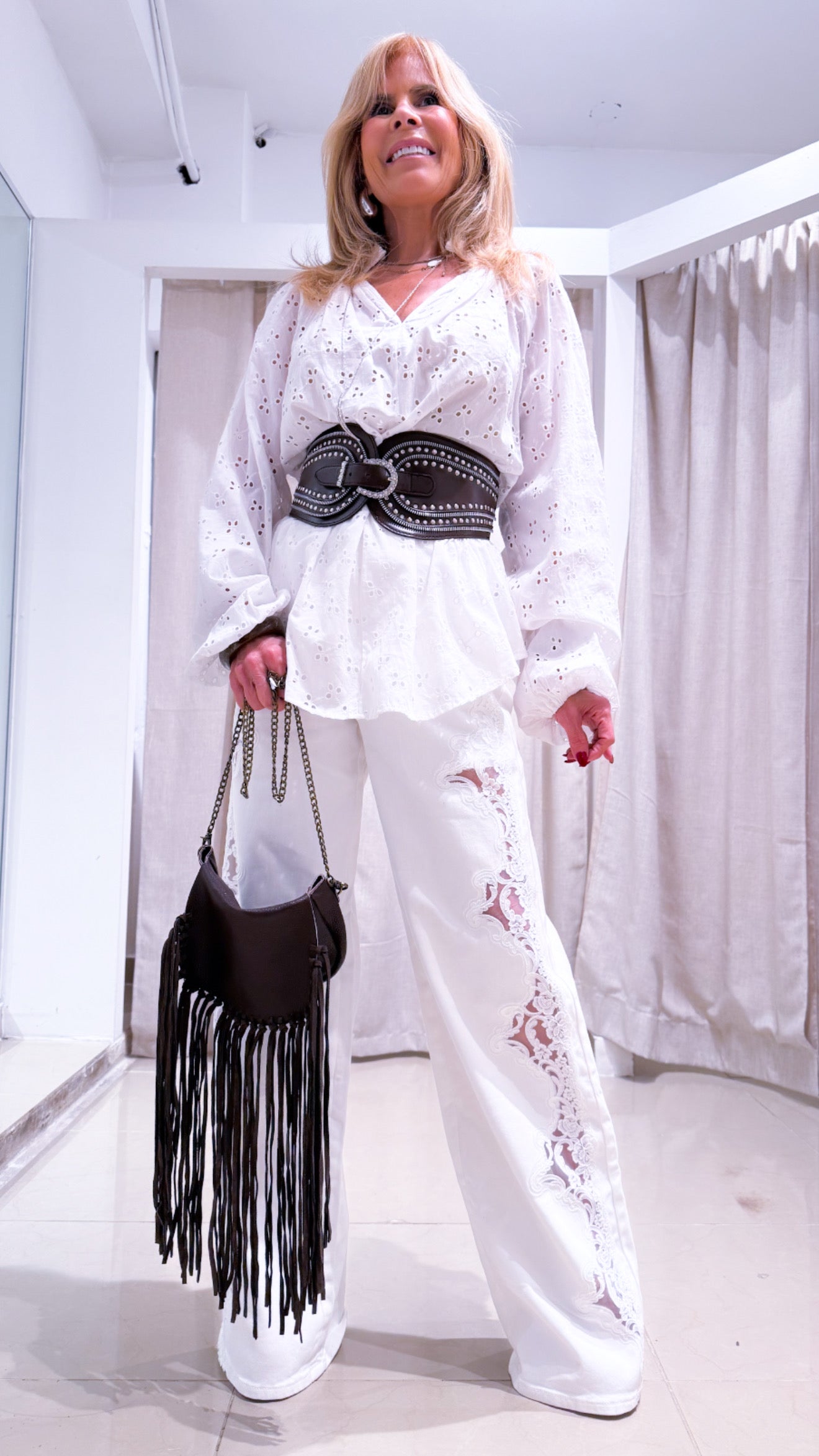 Introducing the Cholé jean - a beautifully designed, white denim jean accented with delicate lace details. Elevate your wardrobe with this stunning piece, perfect for any occasion. Made with high-quality materials, this jean offers both style and comfort for a truly unique look.