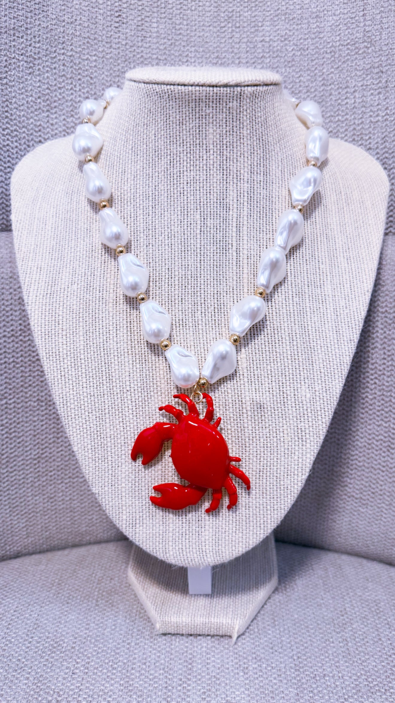Elevate your style with our exquisite Crab Necklace. Crafted with real pearls and featuring a striking red shrimp pendant, this necklace is the perfect accessory to enhance any outfit. Make a bold statement and let your unique taste shine with our elegant and versatile necklace.