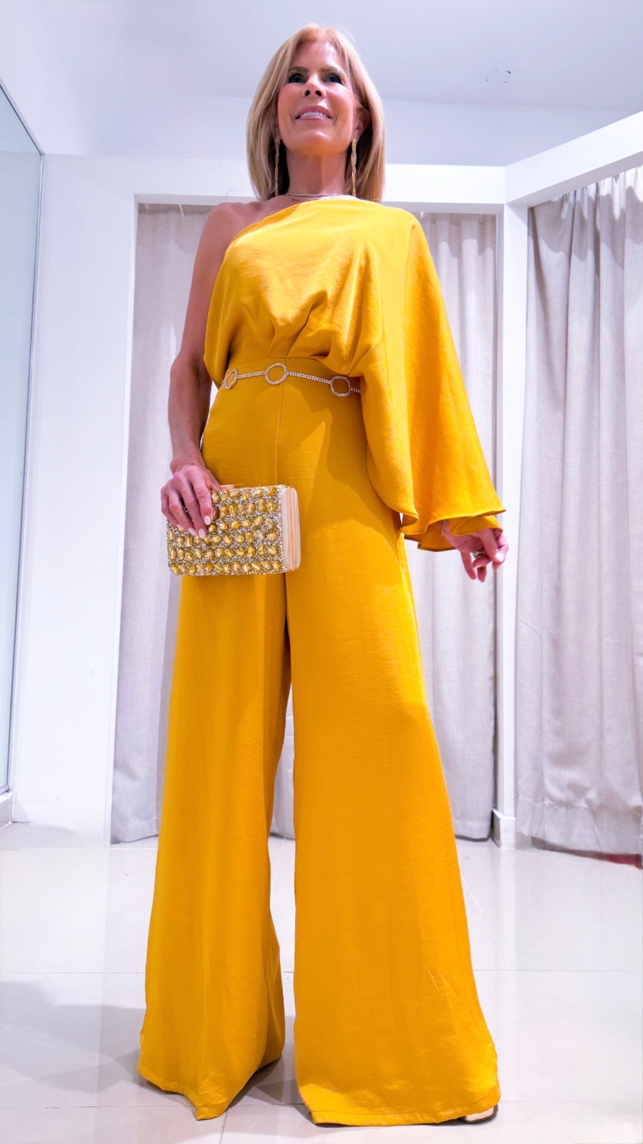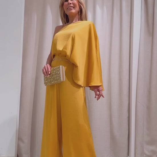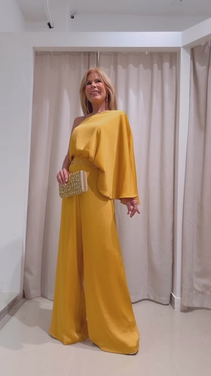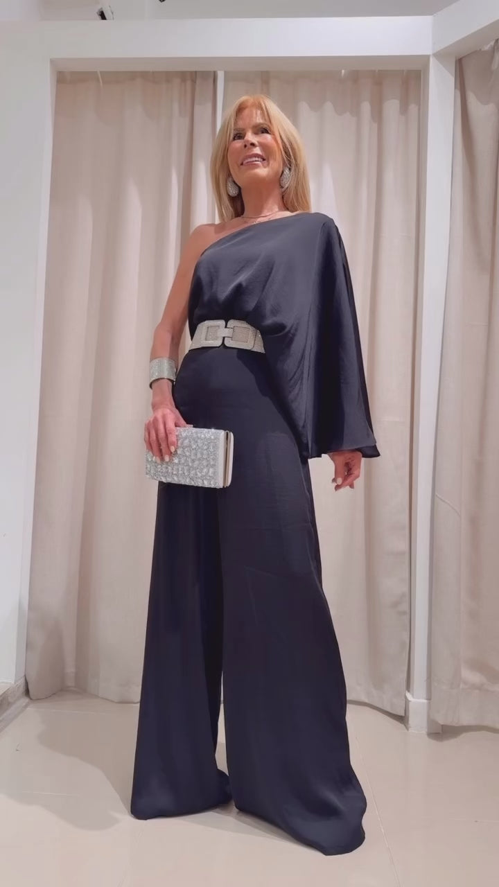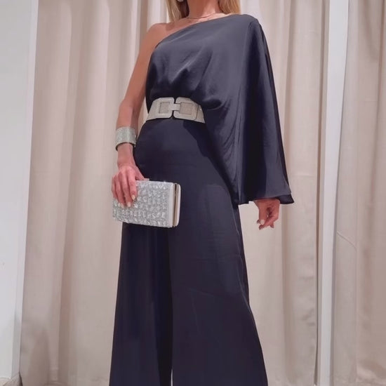 The Cristabelle Jumper is a stylish and versatile piece, perfect for any party or event. With its medium shoulder jumpsuit design and soft, satiny fabric, you'll feel comfortable and elegant all night long. Elevate your look with this luxurious and sophisticated ensemble.