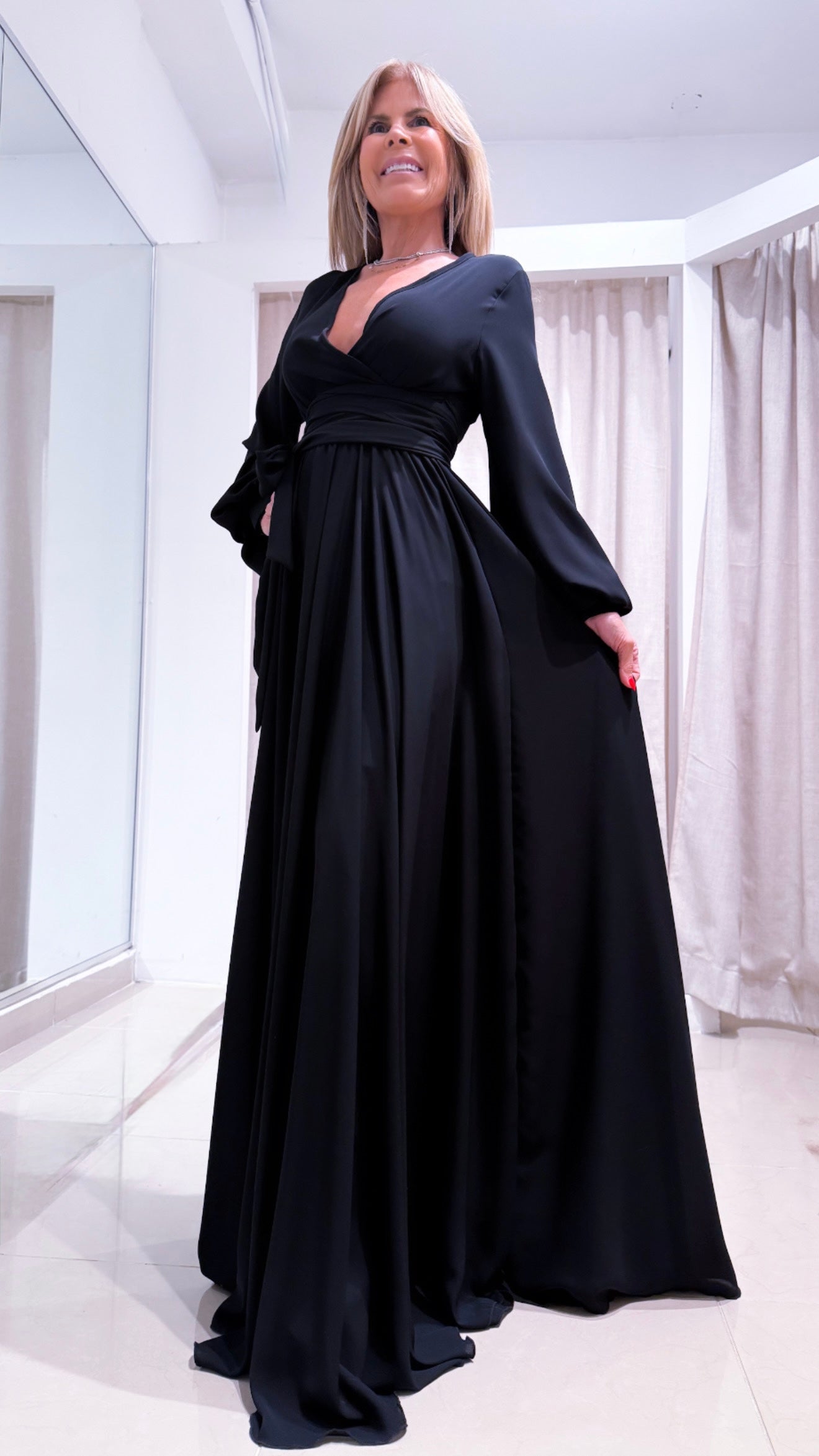 This long solid-colored dress features a v-neck and cinched waist with a belt, offering a flattering and stylish look. Perfect for any occasion, the Emma dress is versatile and timeless.