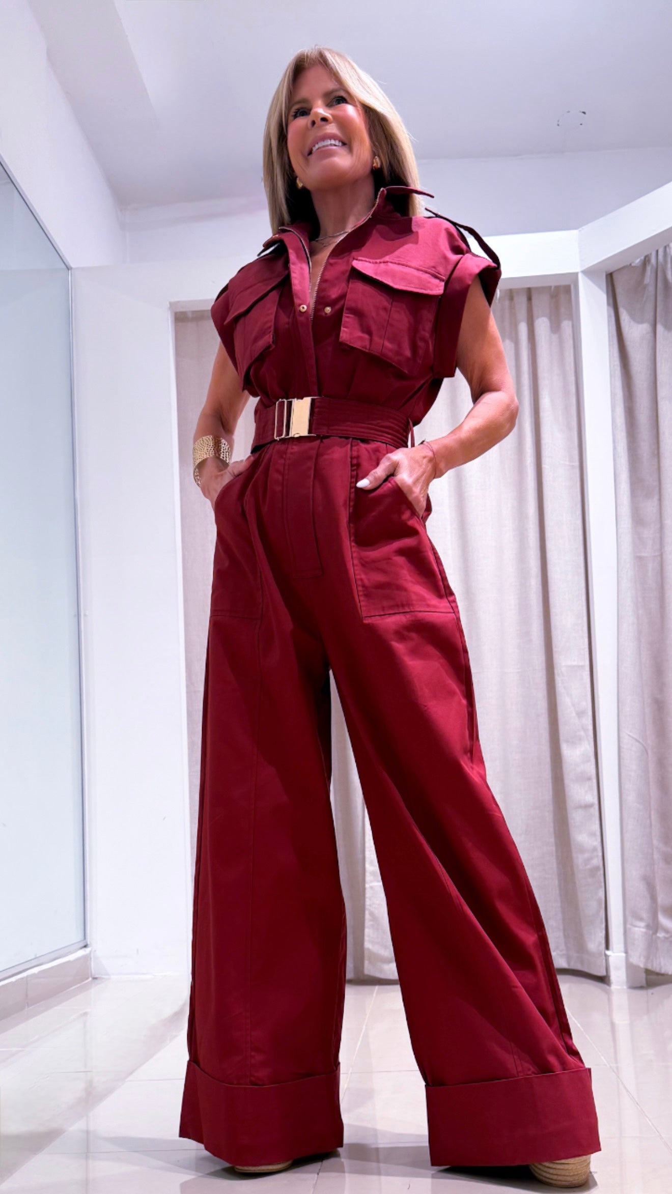 The Julisa jumper is a versatile addition to your wardrobe, featuring a solid color design with short sleeves, a waist strap, and elegant gold accents. Perfect for any occasion, this jumper adds a touch of sophistication to any outfit.