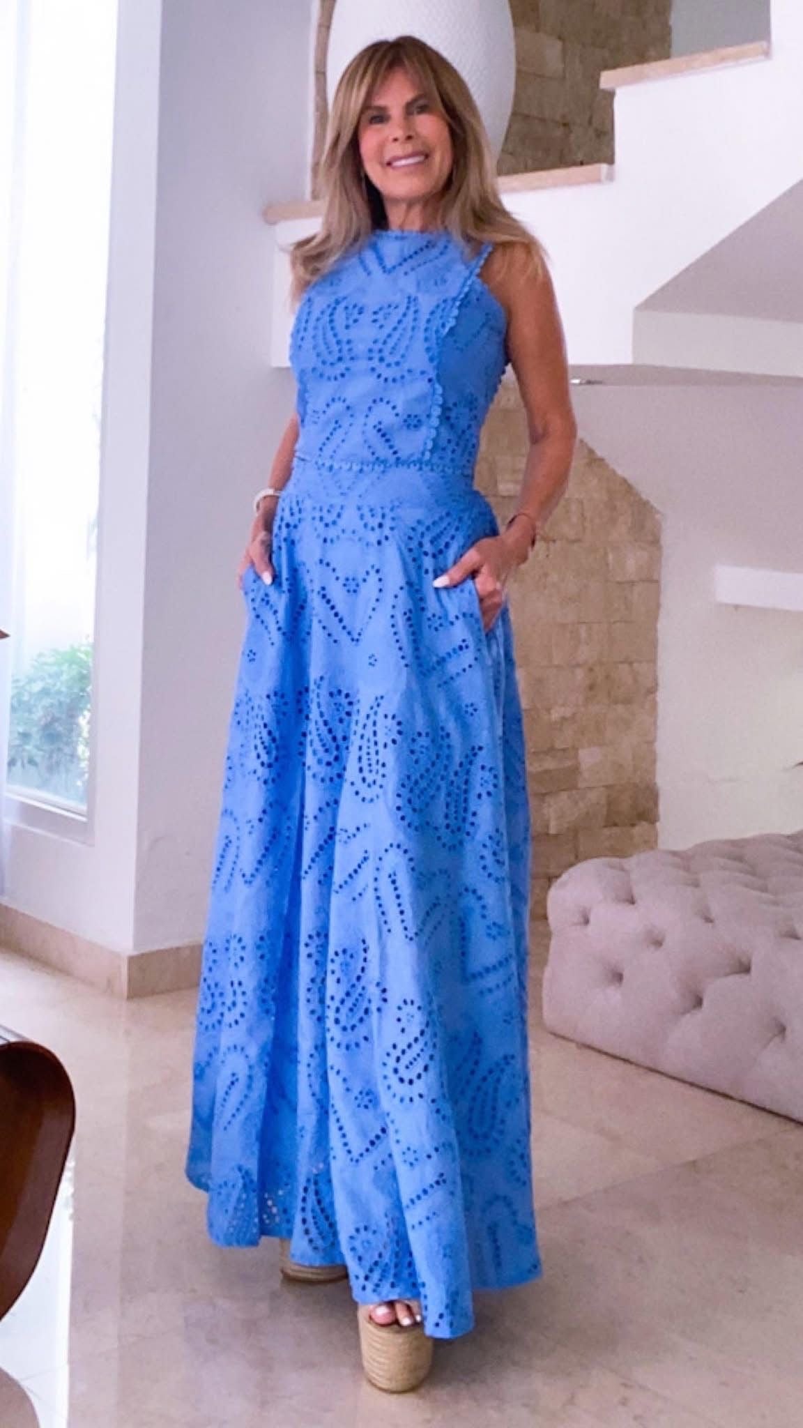 Introducing the Karen set - a stylish and breathable wardrobe essential perfect for any occasion. Made with high-quality super fine cotton, this set features a chic blue skirt and shirt combo. Stay cool and comfortable while looking effortlessly elegant.