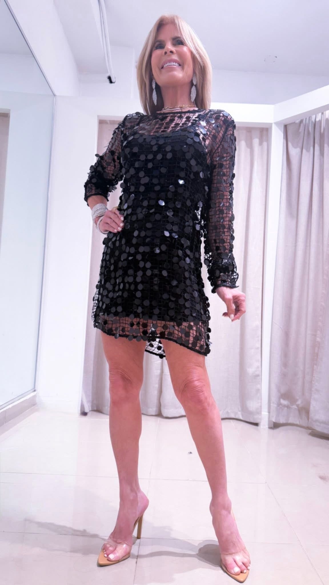 Introducing the Lois top, a stylish and sophisticated piece featuring hand-detailed black sequins for a touch of glamour. The intricate design adds depth and texture to any outfit, making it a must-have for any fashion-forward wardrobe. Upgrade your look with the Lois top.