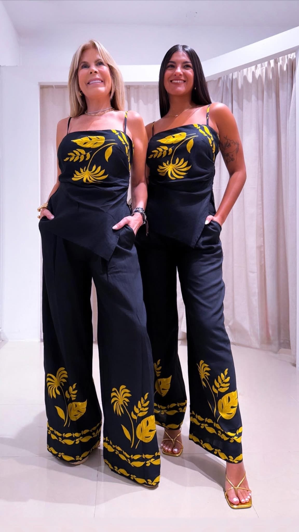 The Lydia set is the perfect combination of comfort and style. Crafted with high-quality black linen, this set features an elastic waistband for a flattering fit. The beautiful yellow accents add a pop of color to elevate your wardrobe. Stay chic and comfortable in the Lydia set.