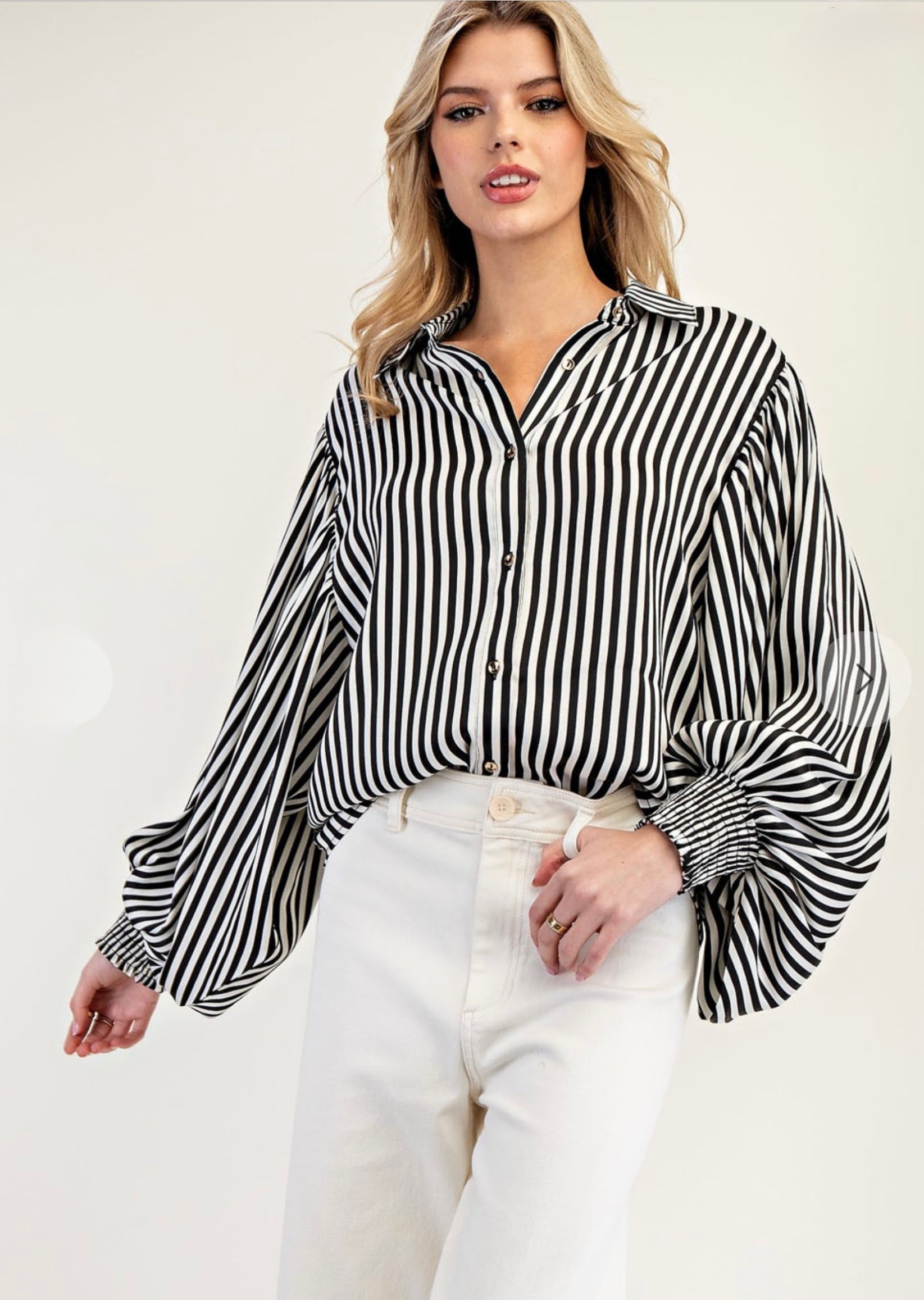 Introducing the Madona top - a beautiful, casual black striped long-sleeved top. Made with high-quality material, this top is both stylish and comfortable. Perfect for any occasion, the Madona top will elevate your wardrobe and keep you looking effortlessly chic.