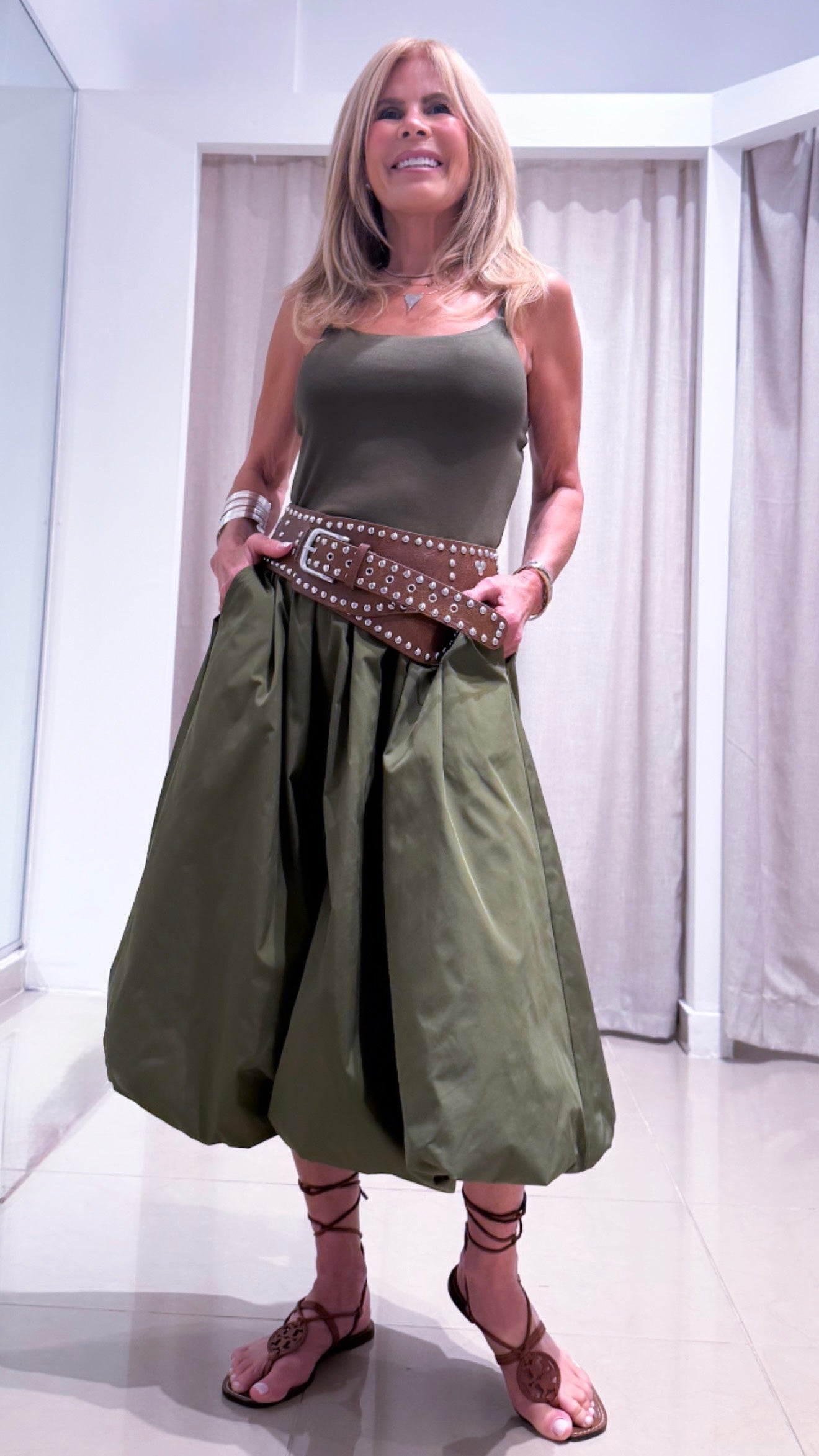 Sleeveless midi bubble skirt dress