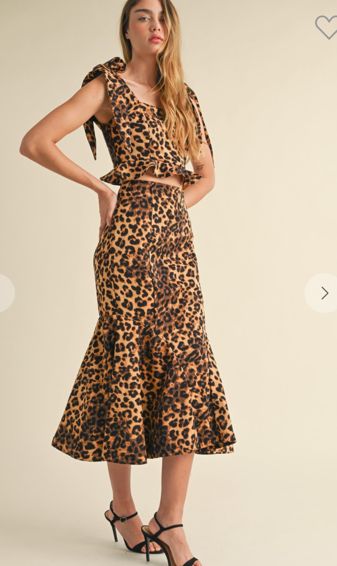 Introducing the Nicole set, a stylish and trendy 2-piece animal print set. Made with high-quality materials, this set is perfect for adding a touch of wild elegance to any outfit. Elevate your wardrobe with this must-have set.