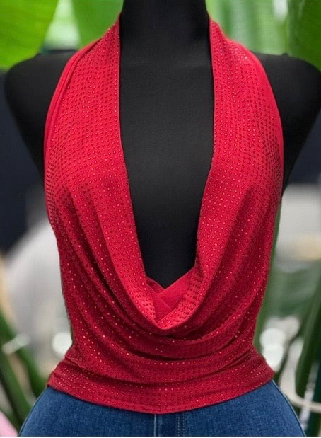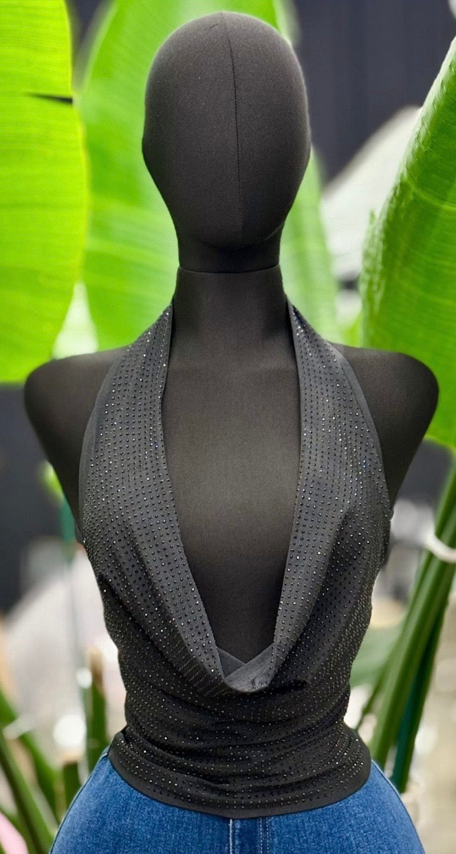 The Ollie top is expertly designed with a solid color and matching stones for a sleek and stylish look. The halter top provides support and comfort, making it perfect for any occasion. Enjoy the benefits of a fashionable and functional piece with the Ollie top.
