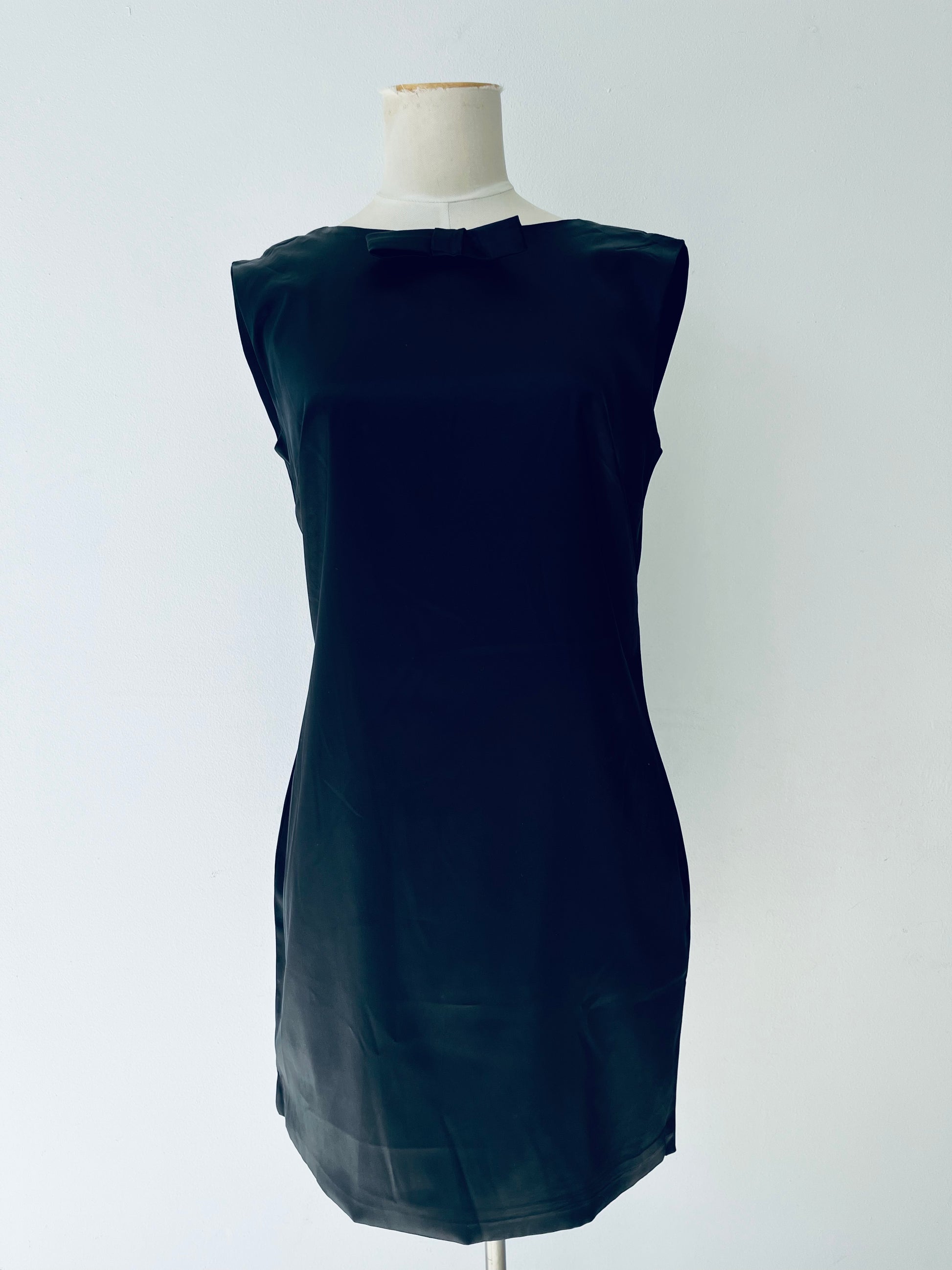 The Pandora dress features a sleek black satin fabric that offers a luxurious appearance. Its short design enhances mobility while maintaining a sophisticated aesthetic. This garment is ideal for various occasions, providing versatility in styling and comfort without compromising elegance.