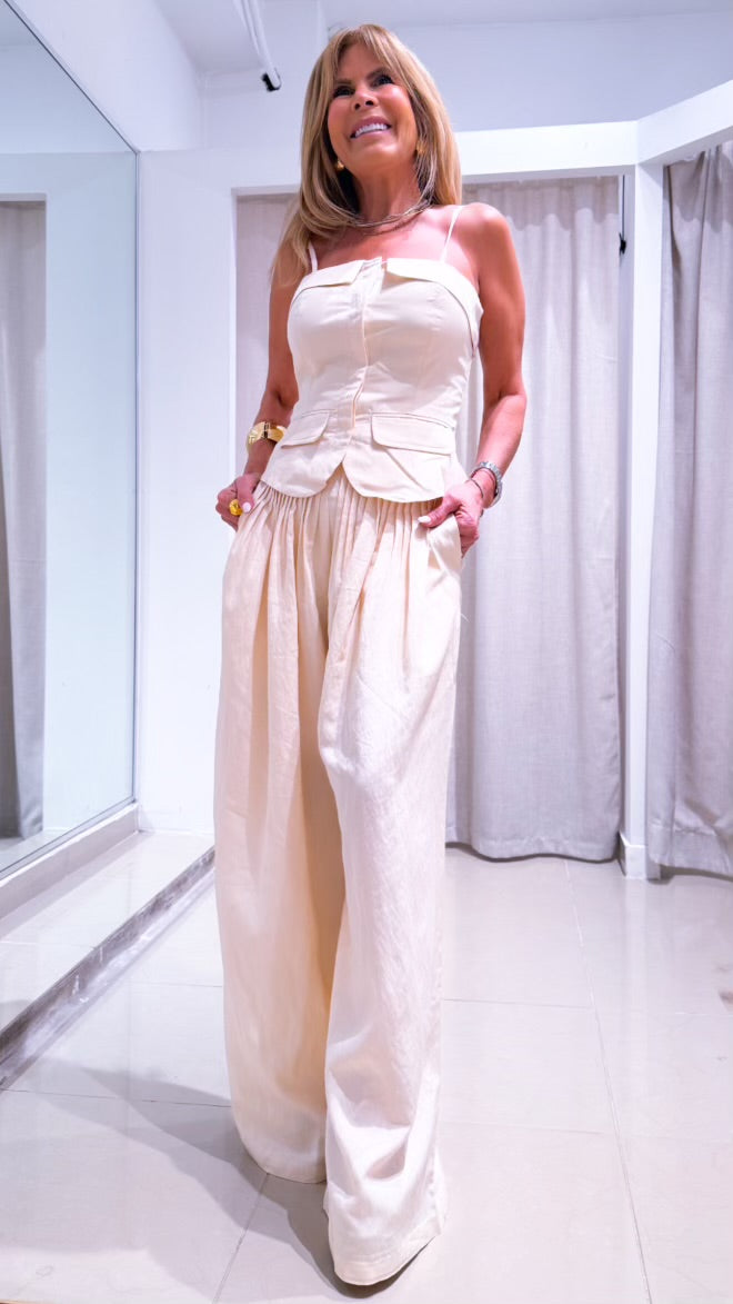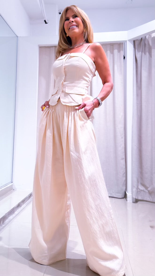 Upgrade your wardrobe with our Vale set. This beige, hilo pant set is perfect for any occasion with its refreshing fabric. Stay on trend and comfortable with this versatile ensemble.